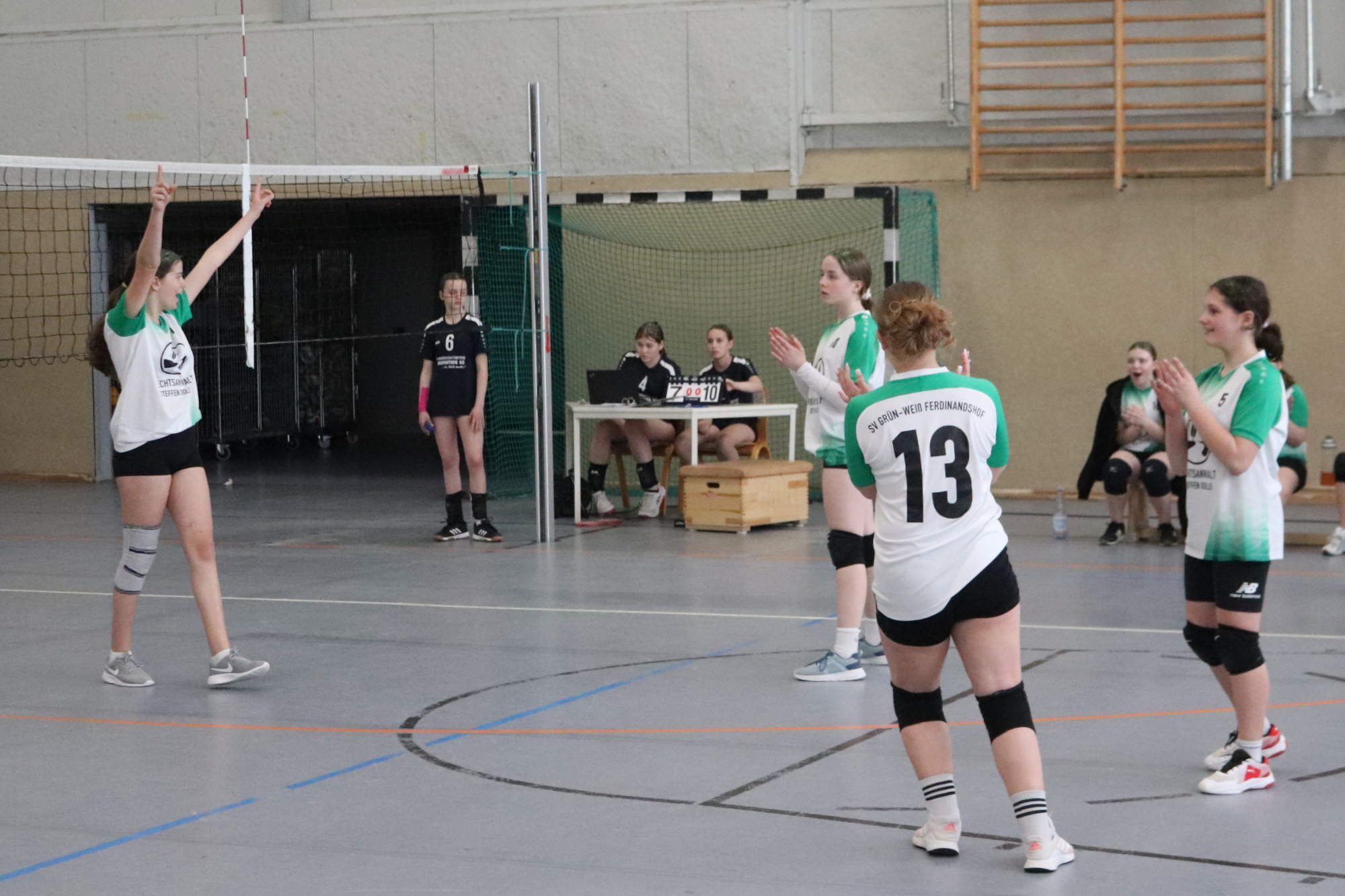 Mit 8 Mädchen fuhren wir am 18.04.2026 nach Rostock zur B-Runde der Landesmeisterschaften U 15 w in Rostock. Mit grünem Glitzer in den Haaren und eingeübter Choreografie zum Punktefeiern ging es zuerst gegen Schwaan zur Sache.