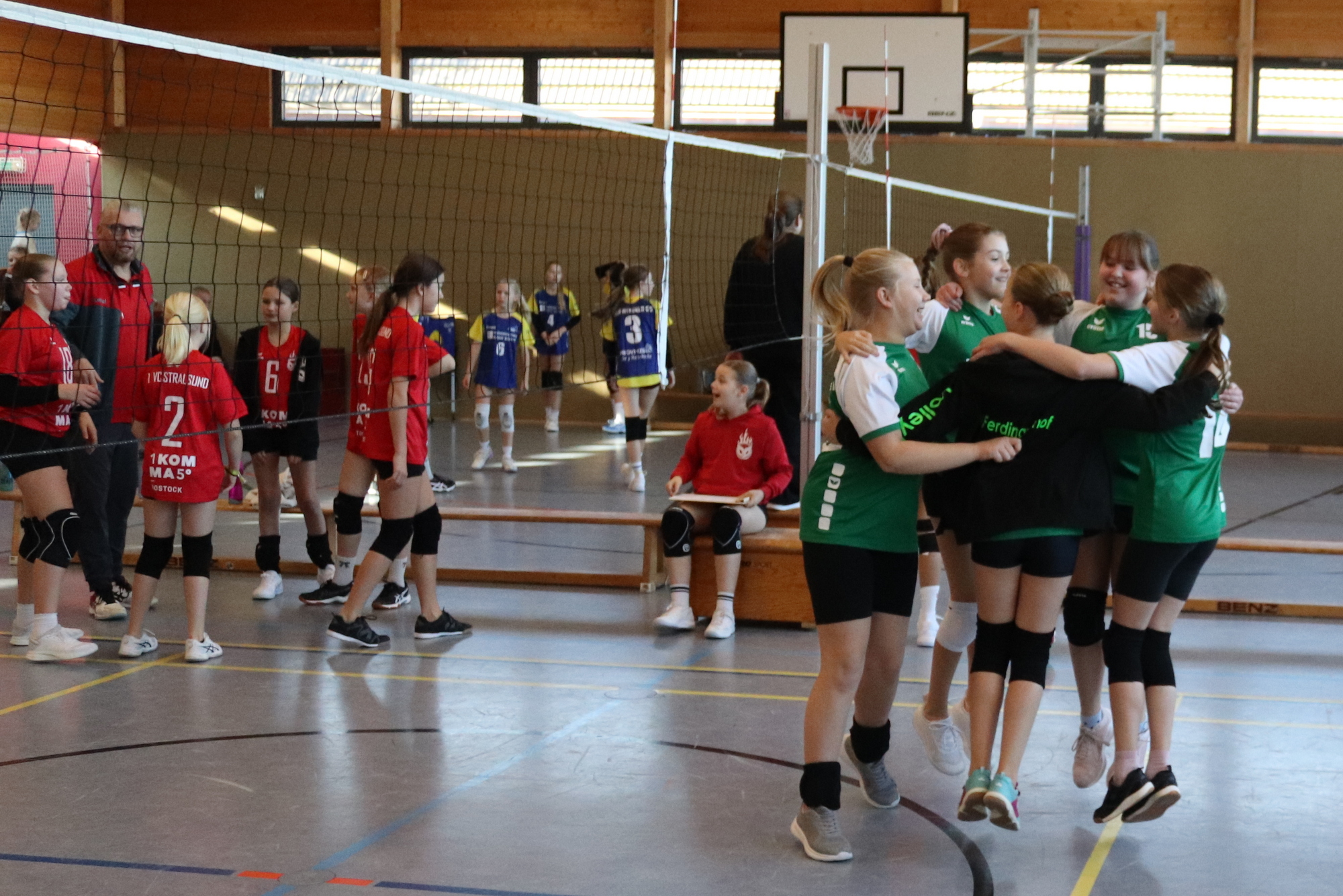 Am 08.11.2025 waren wir Ausrichter einer Vorrunde der Landesmeisterschaften U 13 w im Volleyball. 8 Mannschaften waren angetreten und kämpften in 2 Staffeln in der Vorrunde. Wir hatten mit Neubrandenburg I, Schwerin II und Stralsund II die stärkere Staffel erwischt, wie man auch leicht am Endergebnis sehen kann.